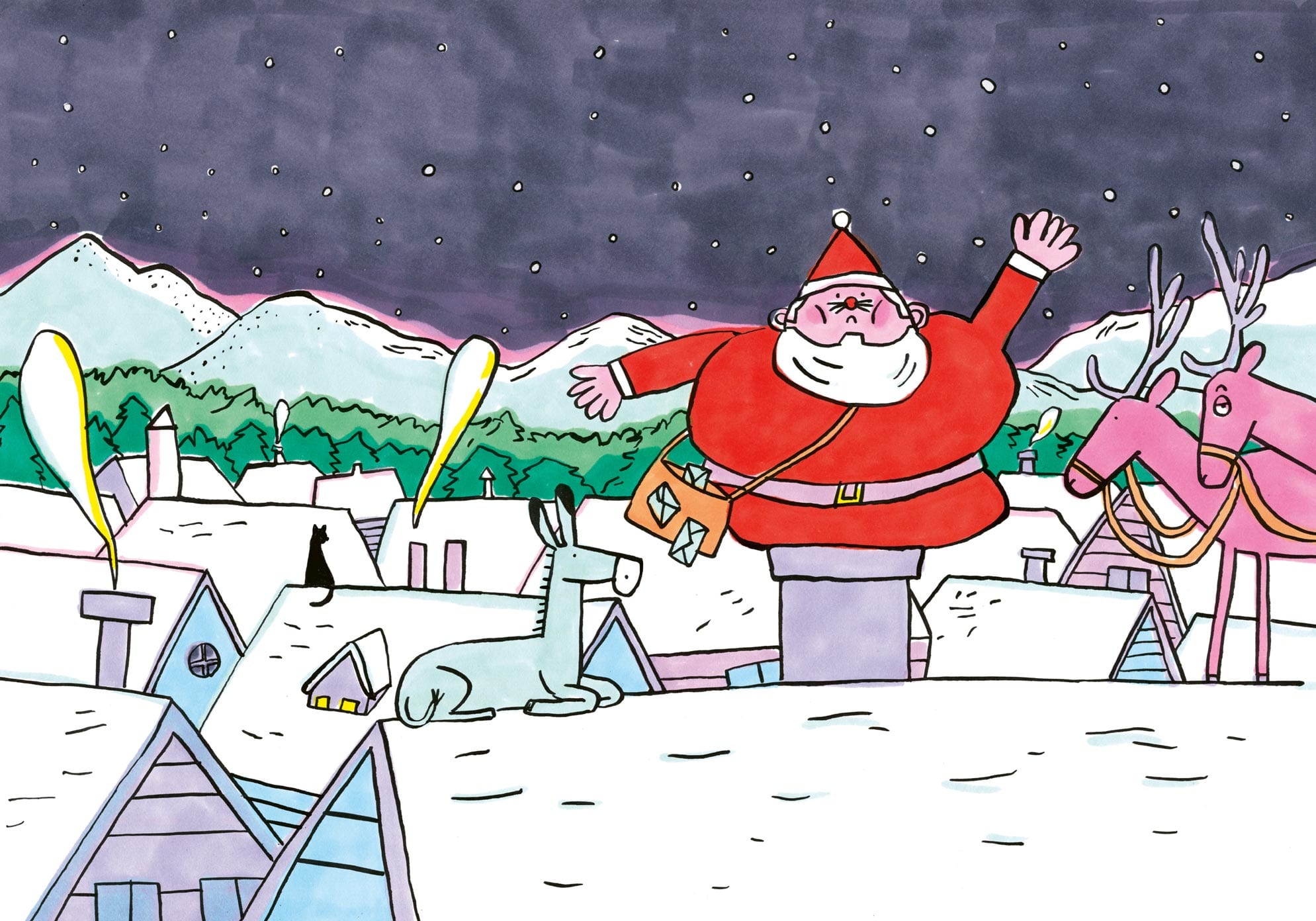 C’est la nuit du 6 décembre. Arrivés l’un après l’autre dans une maison endormie, les deux blancs barbus tombent nez à nez… et ça n’a pas l’air de leur plaire.