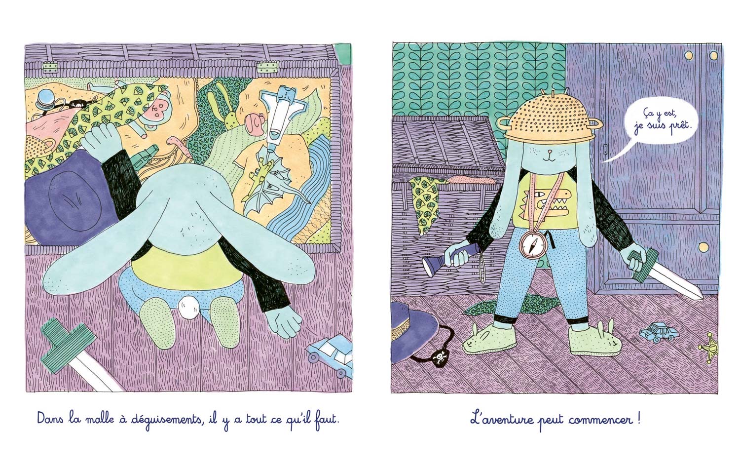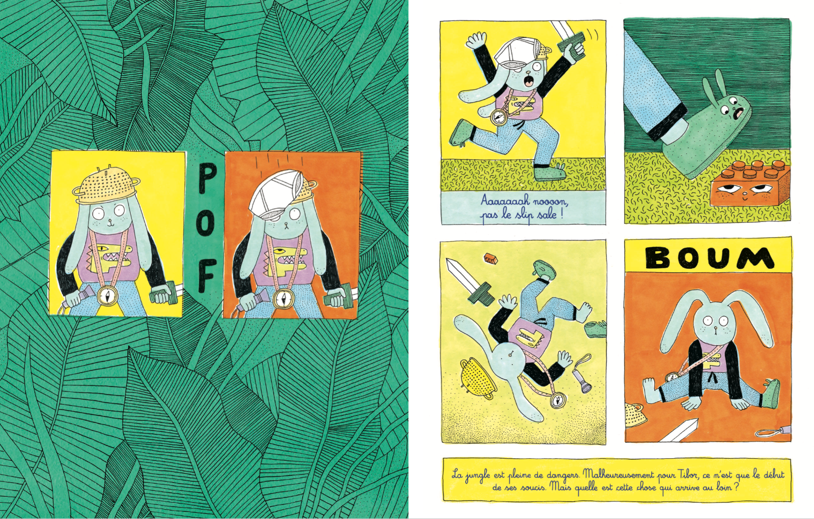 Une fois la nuit tombée, il part à la recherche du monstre pour l’affronter dans un combat épique. En chemin, il se retrouve dans la terrible jungle du désordre, jonchée de chaussettes puantes, briques de lego éparpillées, pièces de puzzle égarées et autres moutons de poussière. Tibor parviendra-t-il à sortir de cette montagne d’objet ?